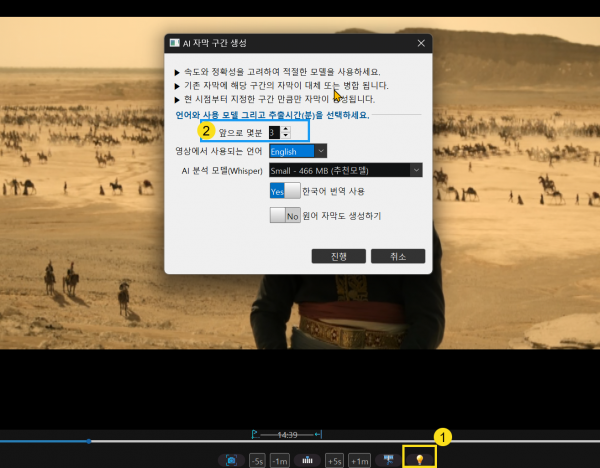 2. 자막 만들 구간에 대해서만 선택적 자막을 만들수 있습니다.